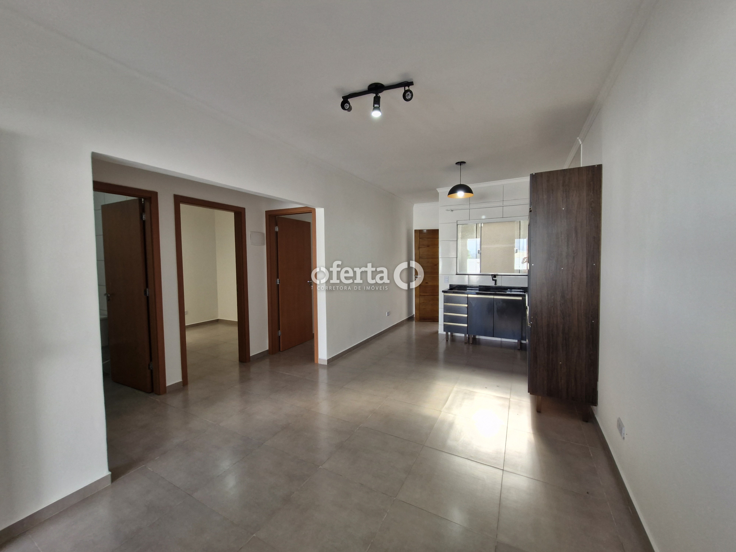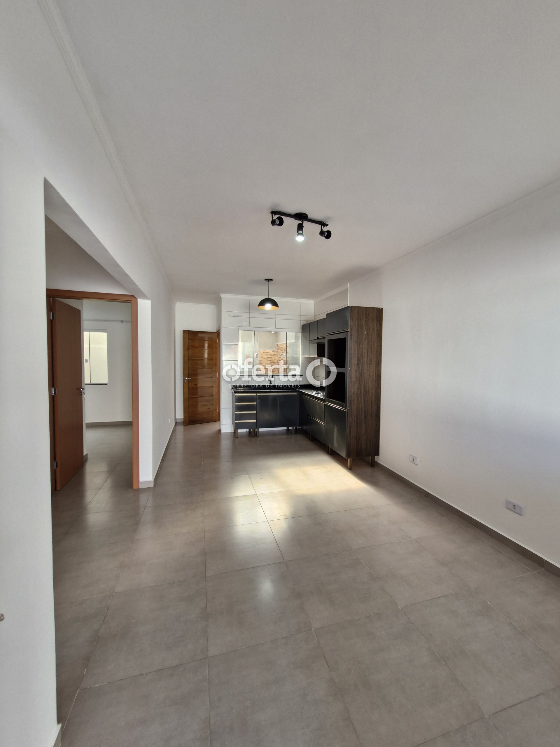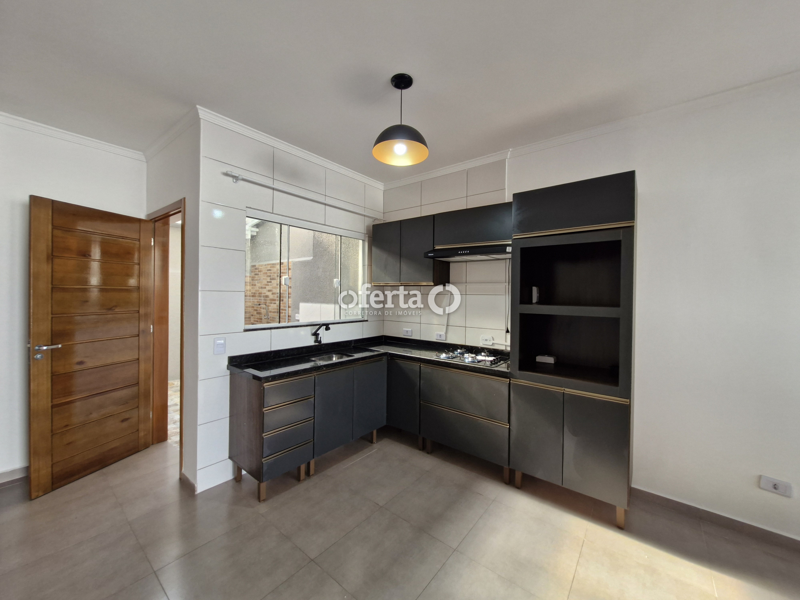 - Cozinha com móveis e eletros.