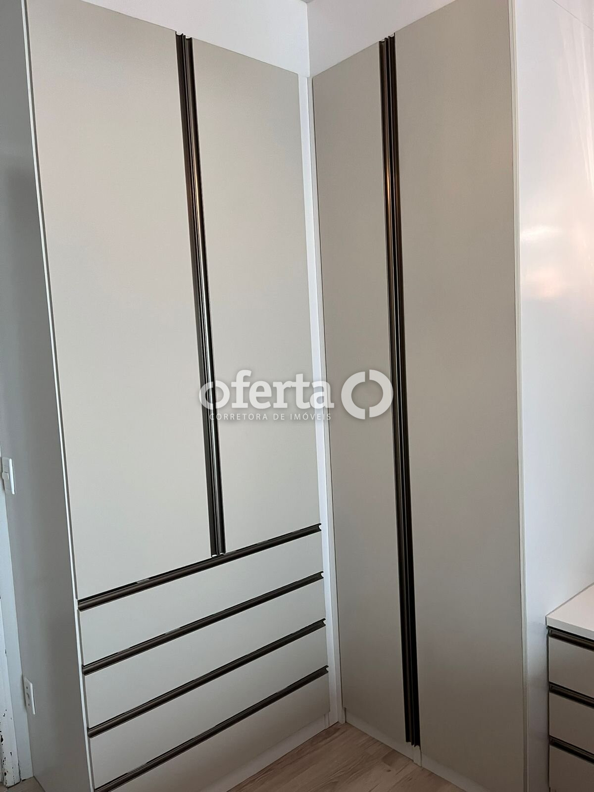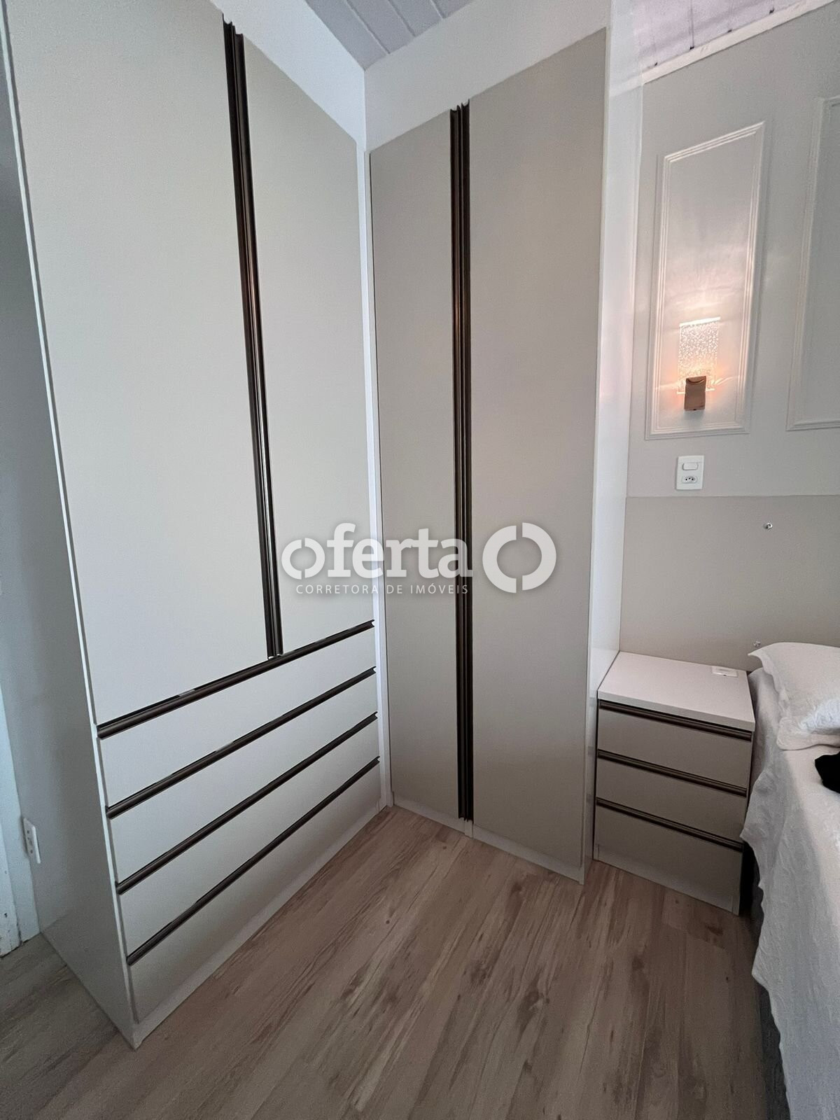 Quarto amplo com móveis sob medida recém-feitos, de alto padrão, oferecendo conforto, organização e ótimo acabamento.